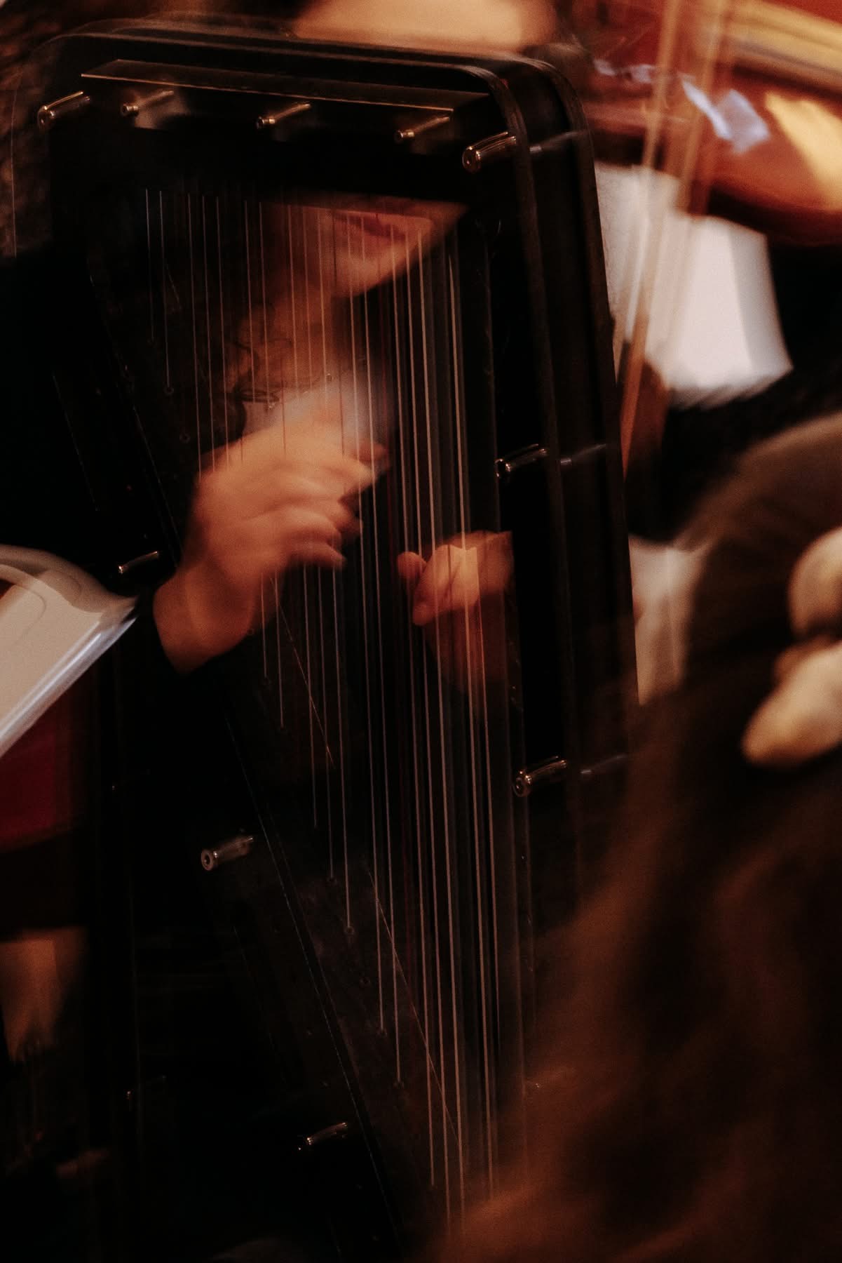 Her performance practice includes explorations with electric harps and electronics, including live-processing of the instrument and her voice.