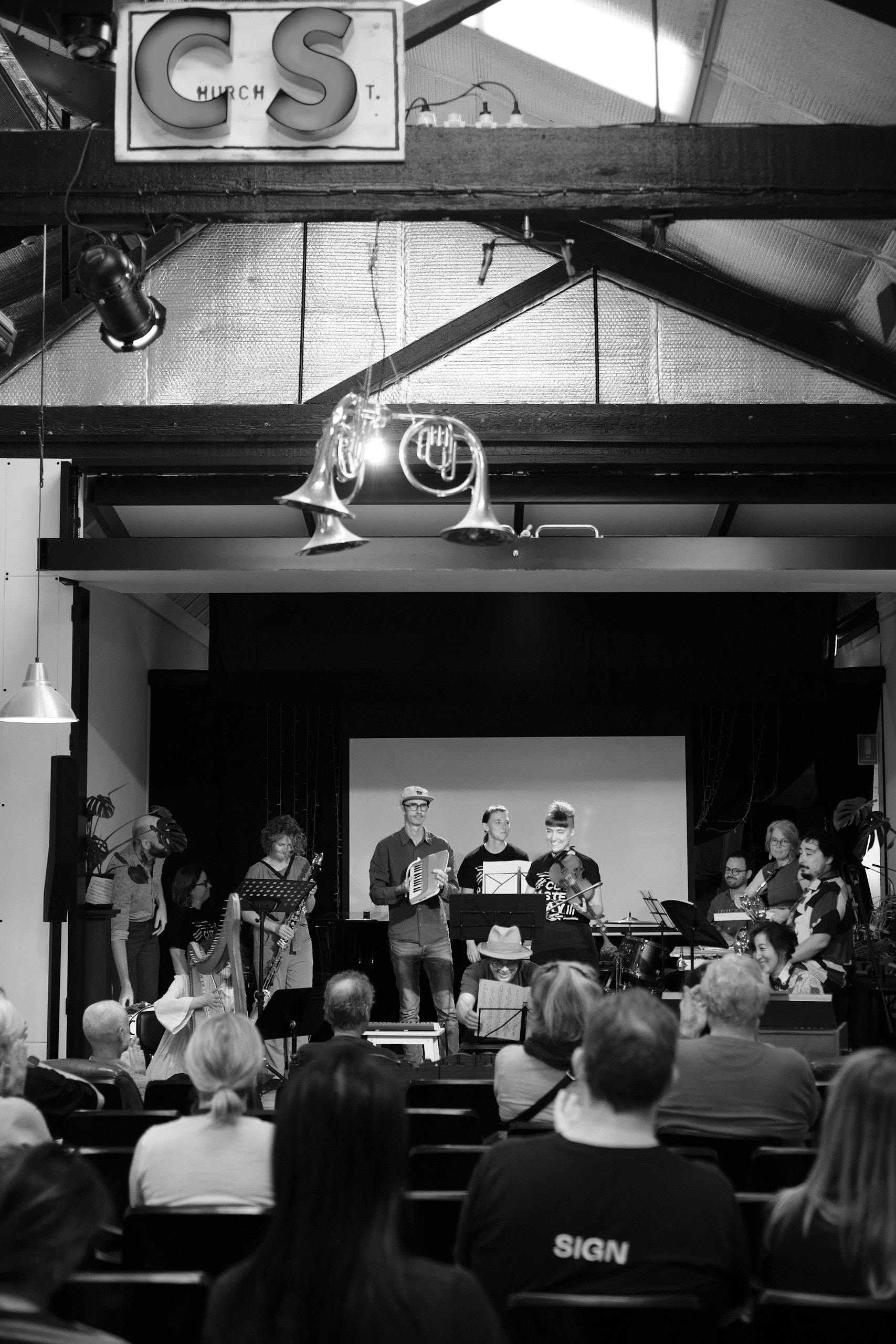 The idea for this installation came about in response to the festival themes combined with the space itself. It functioned as a way to invite people into the space and prepare them to be open to the exploratory sounds of the performers.