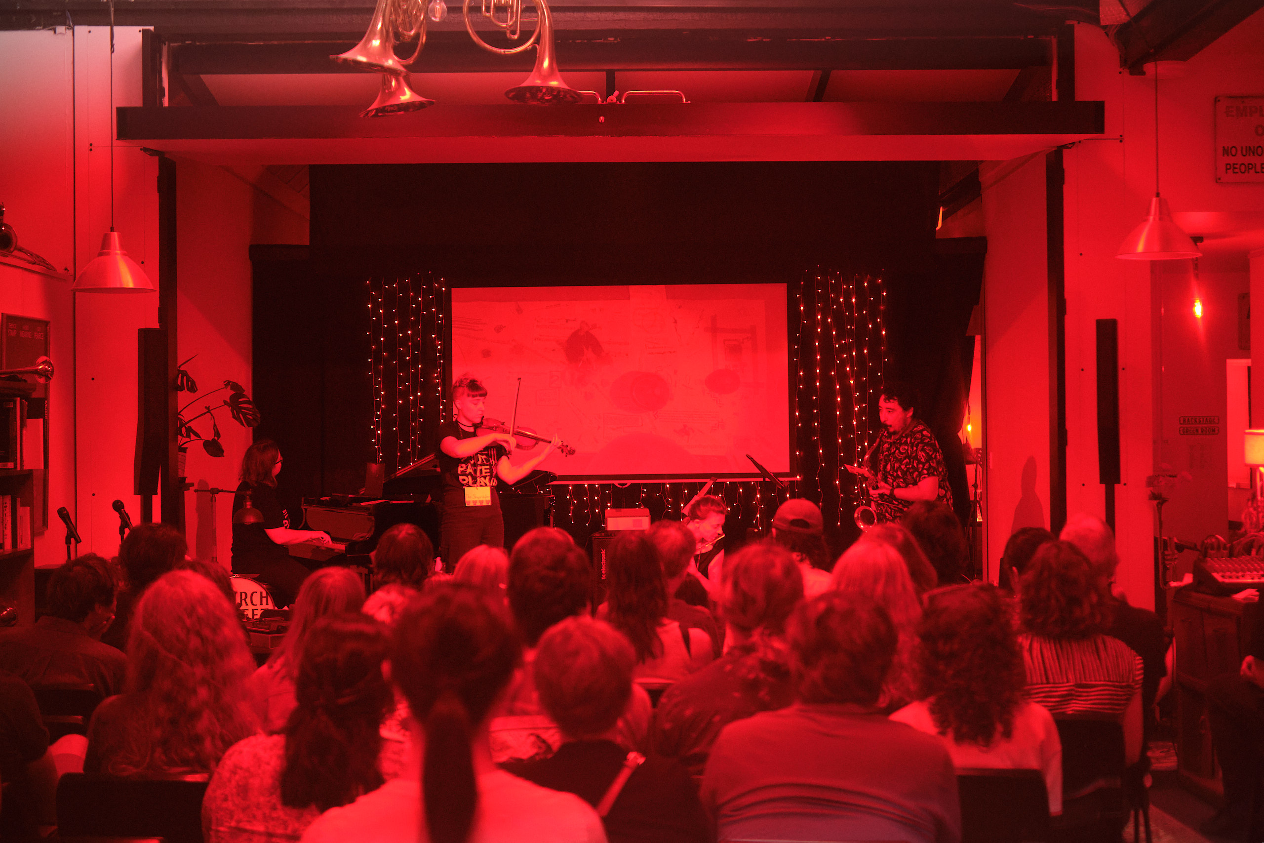 Three sets of headphones offered guests the chance to immerse themselves in an overwhelming soundscape – constructed out of the music of all the festival’s performers.